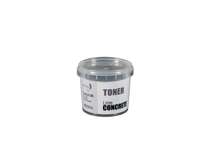 A grey toner in powder form, composed of pigments, natural lime, hydraulic binders and marble fillers, suitable for coloring “Lime Concrete”.